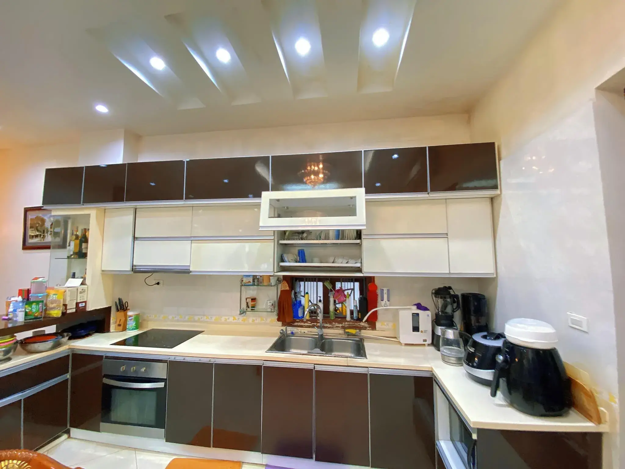 Hiện trạng nhà mới sơn đẹp như mới thiết kế hiện đại tầng 1 thông sàn, bếp.